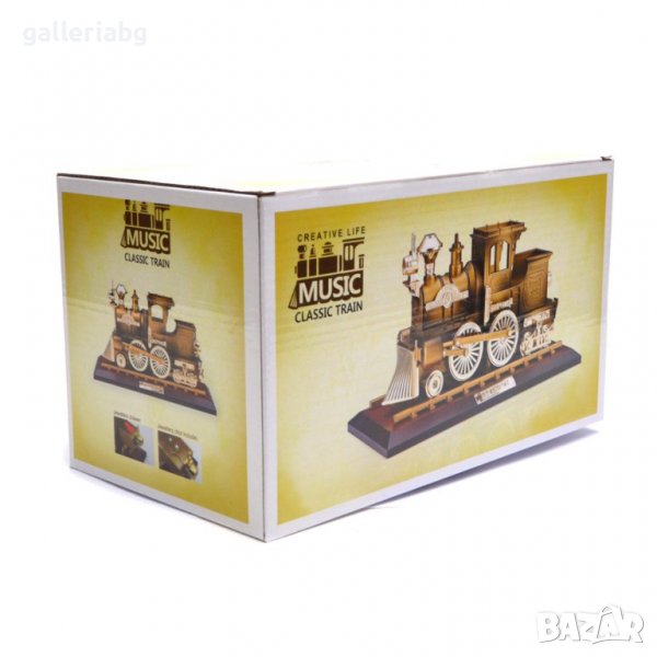 Музикална кутия във формата на ретро локомотив. Основата е с надпис - Have a nice day.