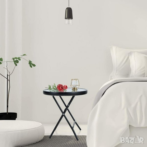Тази малка маса може да се сгъва, за да се спести място, когато не се употребява.
