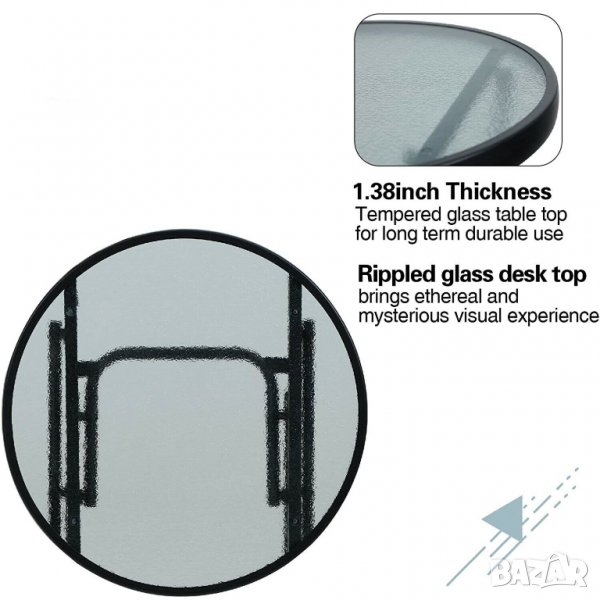 Стъкленият плот и солидната метална рамка са устойчиви на корозия и не избледняват.