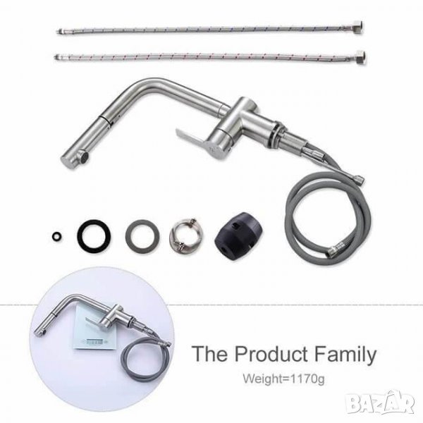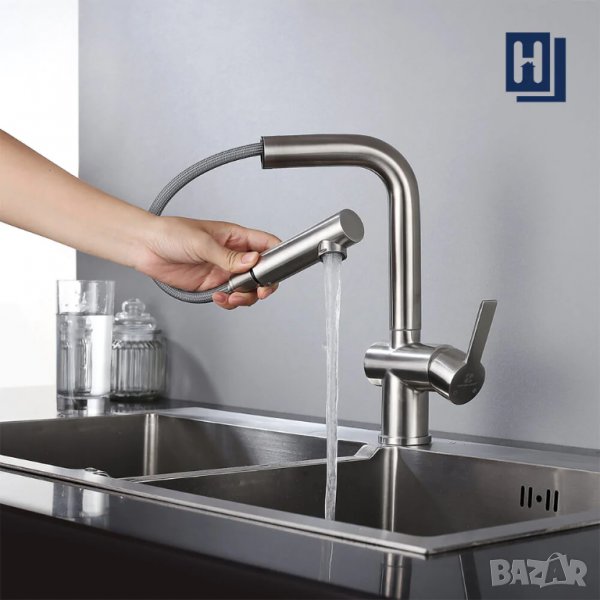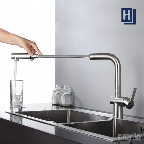 Елегантен смесител от неръждаема стомана с удължаващ маркуч