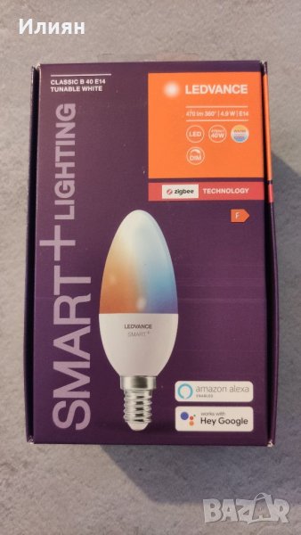 - класическа топла/ студена крушка Е14 Ledvance Smart+ - мощност 4.9W/ 470lm; Цветна температура: 2700К-6500К; Цена 10лв/бр. Наличност 4бр. (снимка 3)