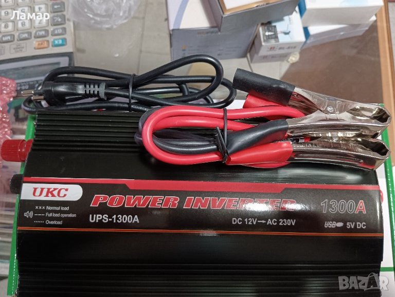 Комбиниран инвертор 12V DC към 220V AC със зарядно за акумулатори 15A Мощност 1300W Цена 80лв.