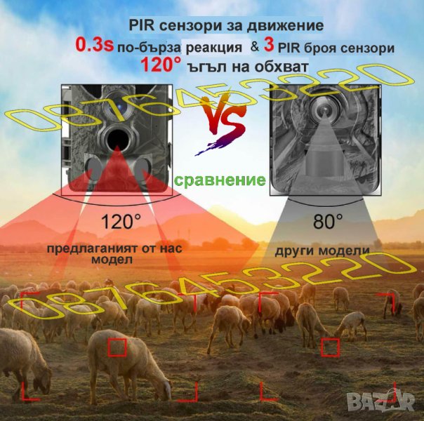 движение и впечатляваща бърза скорост на реакция улавяйки всяко едно действие и движение разиграващо се пред обектива. Камерата разполага с таймер за настройка на заснемане в определени от вас часове . Заснетите кадри са с високо качество на изображението, както през деня така и през нощта .