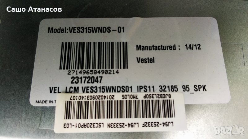 TELEFUNKEN D32H125A3 със счупена матрица ,17MB82S ,17IPS11 ,VES315WNDS-01 ,17LD141 ,LSC320AP01-L03
