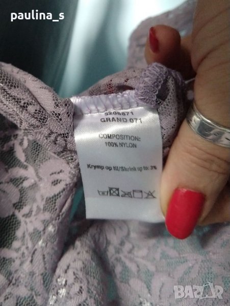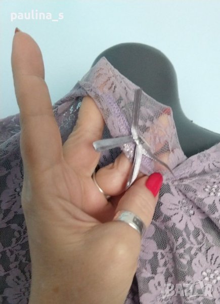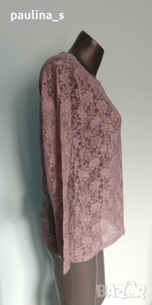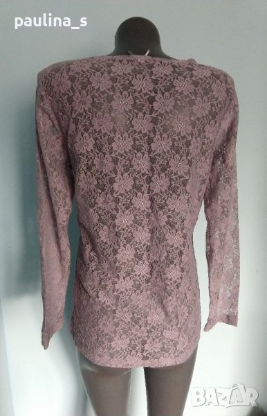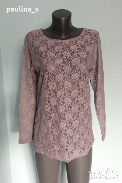 Една бройка. Много красива блуза с дълъг ръкав от еластична дантела. Цветът е лилав, поради еластичността може да се носи от няколко размера, една бройка е. Нова, без етикет.