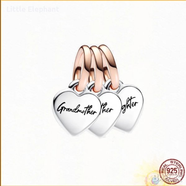 Сребърен висящ елемент Пандора"Grandmother,mother,doughter",Rose Gold/нови → Обява 39831308
