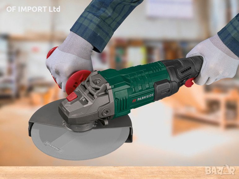 Ъглошлайф PARKSIDE със стабилна алуминиева предна част на корпуса и променливи, неплъзгащи се гумени дръжки.