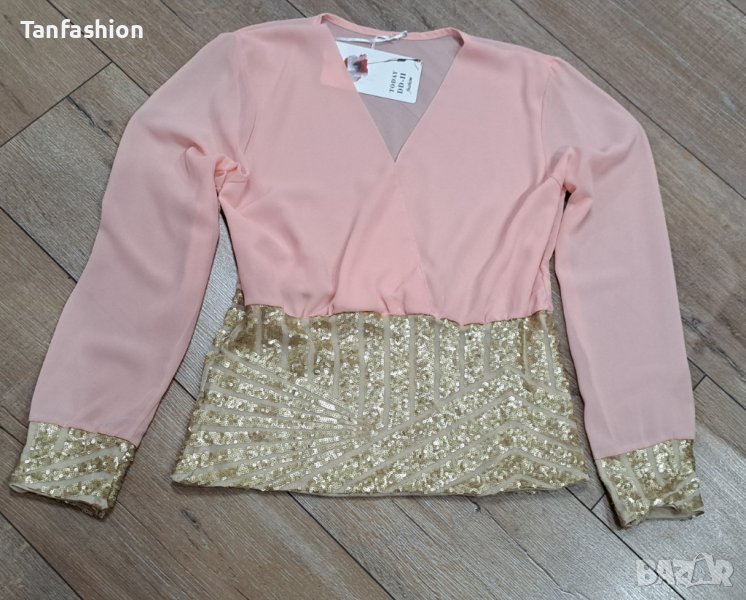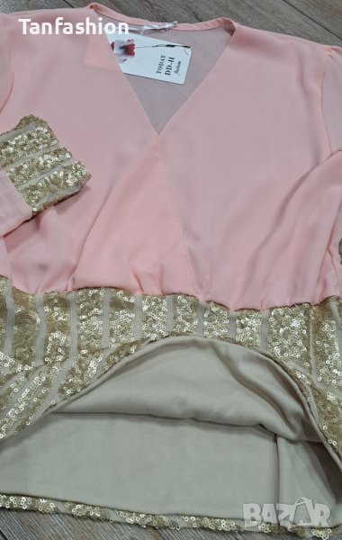Нова уникално нежна риза в бонбонен и актуален цвят за сезона,с прехвърляне отпред, без да се разтваря Нежни златисти елементи на ръкавите и колана, което я прави и много елегантна
