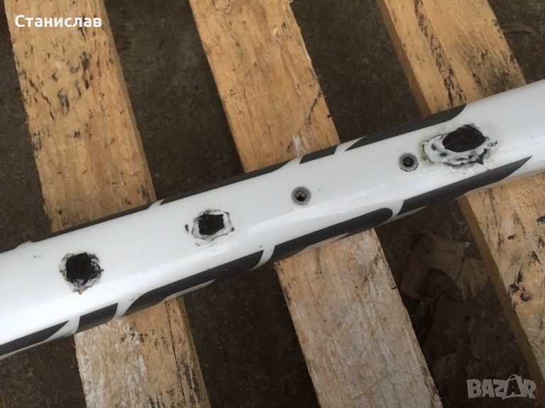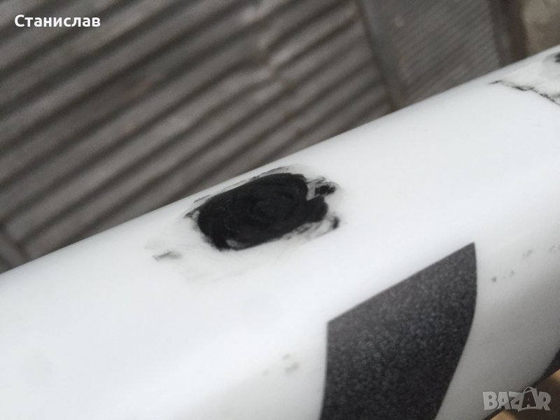 рамка giant tcr carbon advanced composite, рамката е ремонтирана, имаше три дъпки в долната тръба, вече са запълнени отвътре навън с карбон и е готова за боядисване, несъм я боядисал за да се вижа къде е ремонтирано, размера е M-L
