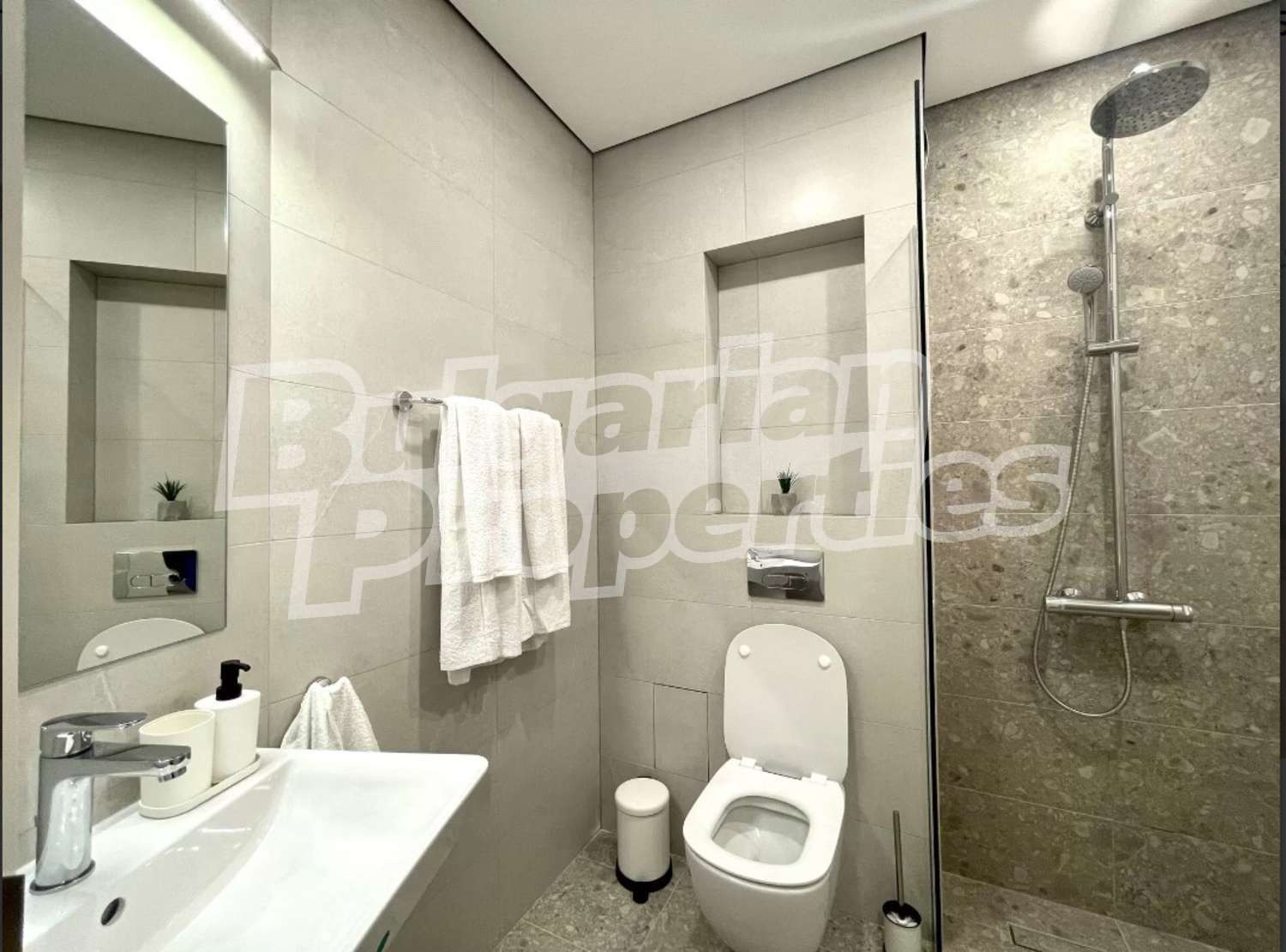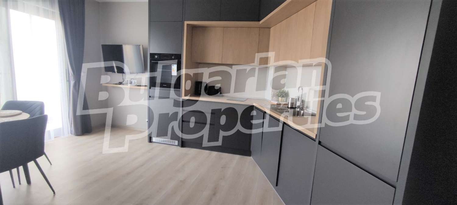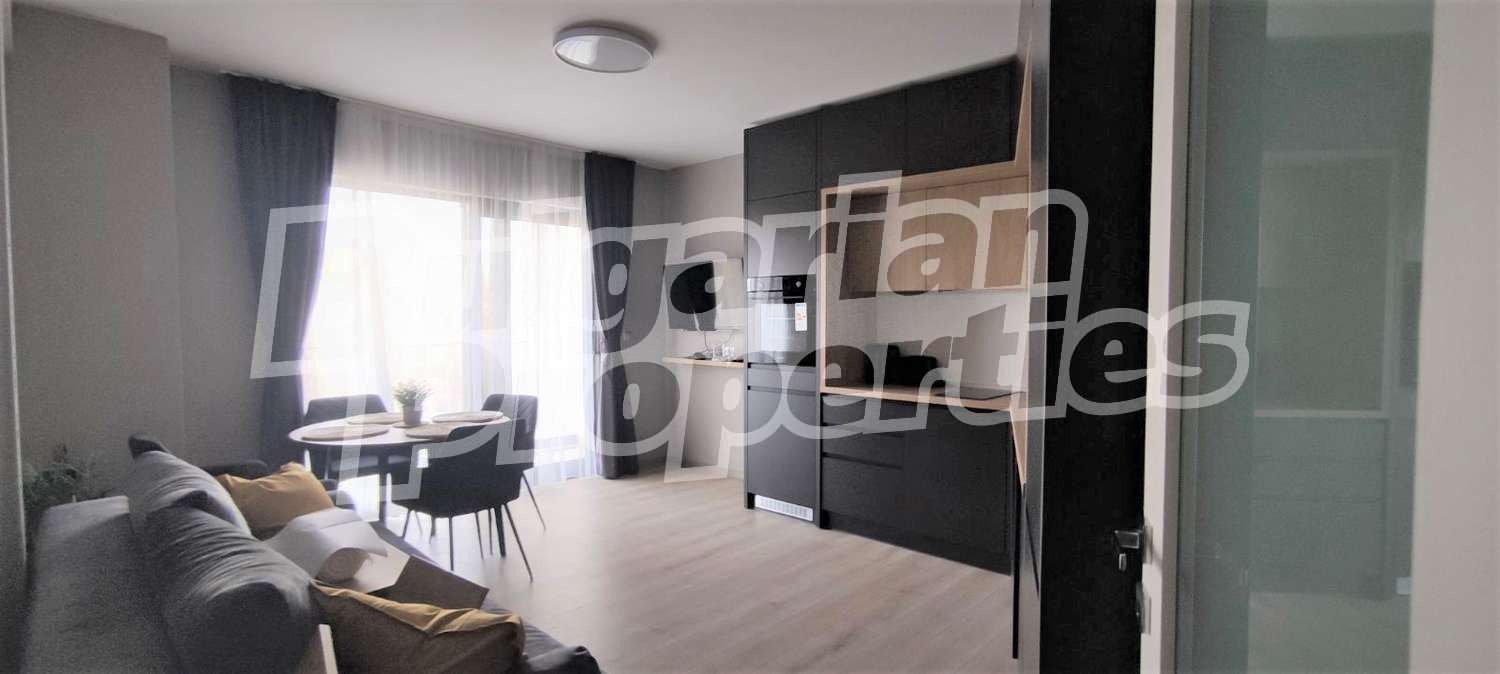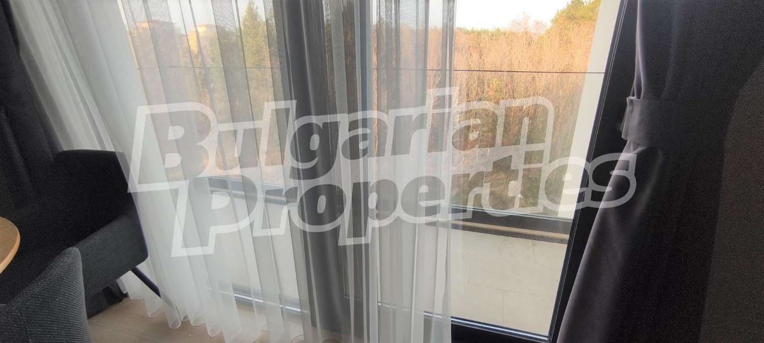 Имаме удоволствието да предложим за продажба двустаен апартамент със съвременна визия и дизайн в нов комплекс, предлагащ комфорт и изискана обстановка за ценители, разположен в уникално красив район с борова гора и море, с директен достъп до плажа (50 м), само на 3 минути разстояние от идеалния център на
