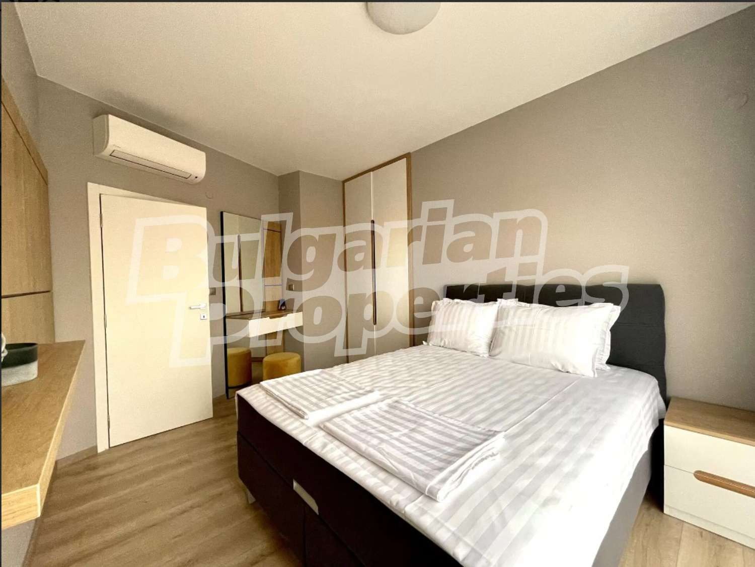 За отопление и охлаждане за подсигурени климатици Дайкин . Имотът е завършен със стилно и качествено обзавеждане, което може да разгледате на снимките. Такса поддръжка - 15 евро/кв.м.