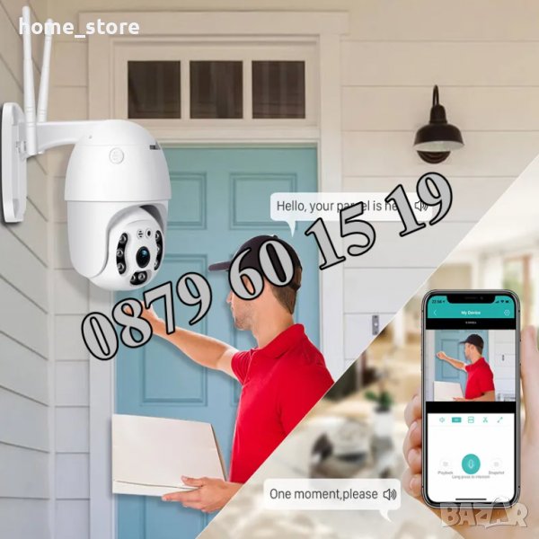 - Снабдена с двупосочен интерком (аудио), камерата е с вграден в нея микрофон и високоговорител