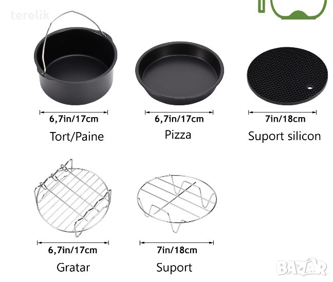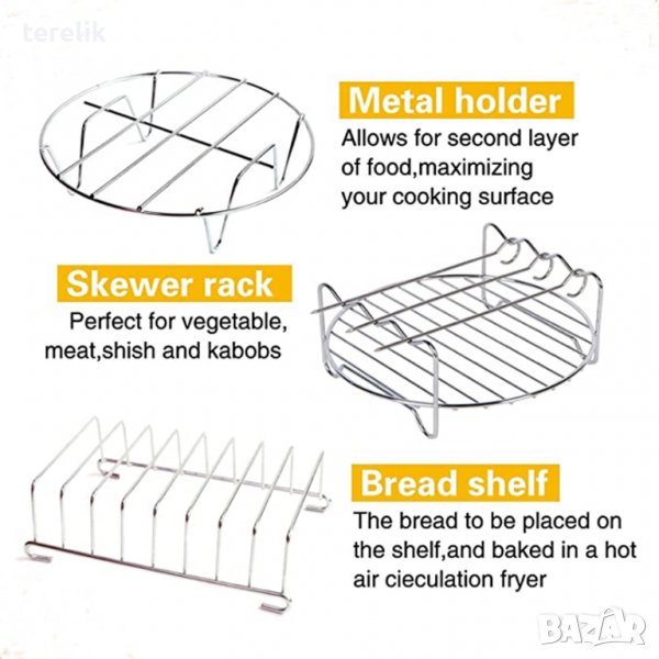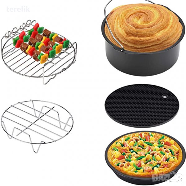 Висококачествени аксесоари за въздушни фритюрници 8 инча за Gowise Phillips Cozyna и Secura, комплект от 7, подходящи за всички въздушни фритюрници 5.3QT до 5.8QT