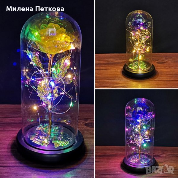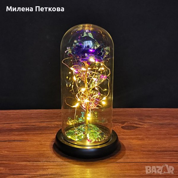 Вечна роза,цвете в стъкленица с лед осветление!Подарък за жена,момиче за 8 март!