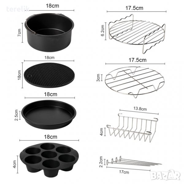 Висококачествени аксесоари за въздушни фритюрници 8 инча за Gowise Phillips Cozyna и Secura, комплект от 7, подходящи за всички въздушни фритюрници 5.3QT до 5.8QT