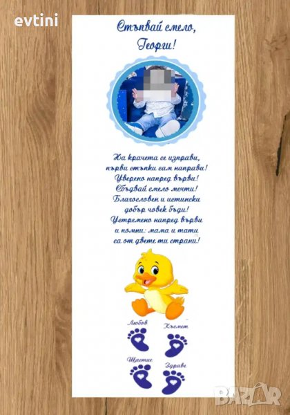 Ето тук се включваме и ние като Ви изработим платно за прощъпулник според Вашите желания и персонализирано с името на детето и датата на това събитие.