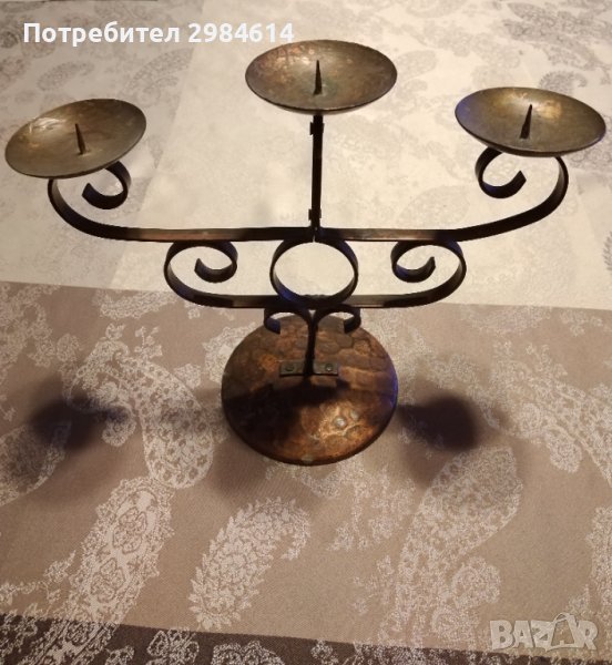 Старинен добре запазен свещник от мед. С размери - височина 21 см. и ширина 24 см.-45 лв