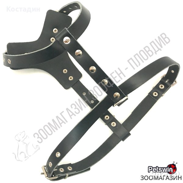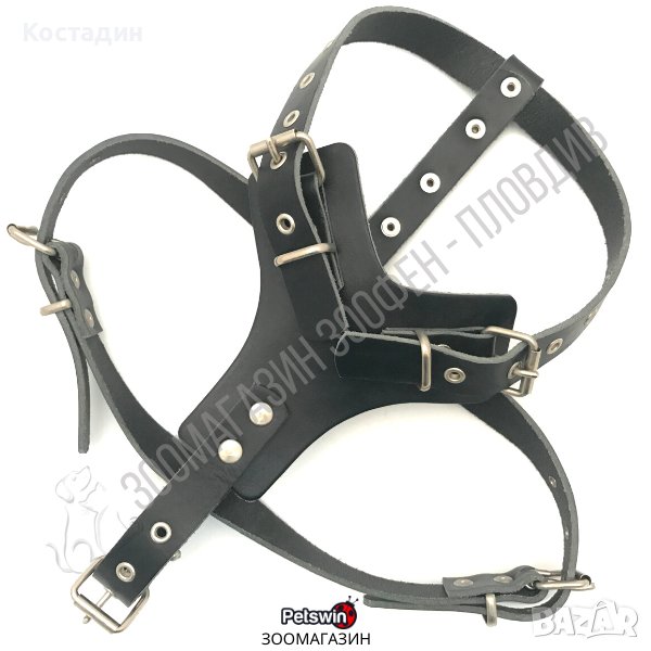 Нагръдник за Куче - Естествена Кожа - S, M, L размер - Черен цвят - Регулируем размер