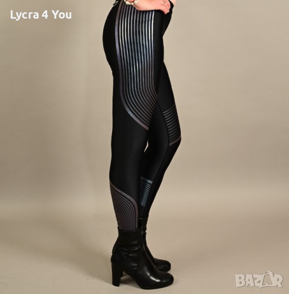 Nike Dri-Fit обличан буквално 2 пъти и без забележки.Черна материя, леко лъскава на микро-точки, със заден джоб с цип. Странично и от двете страни по краката минават сребристи ленти, преливащи в цвят 'хамелион', които на светлина изглеждат нереално.