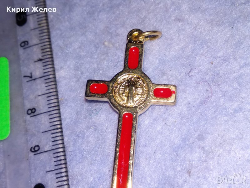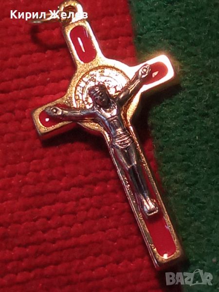 РИМОКАТОЛИЧЕСКО НАГРЪДНО РАЗПЯТИЕ КРЪСТ ЕМАЙЛИРАН БЛАГОРОДНА СТОМАНА РЯДЪК 31206