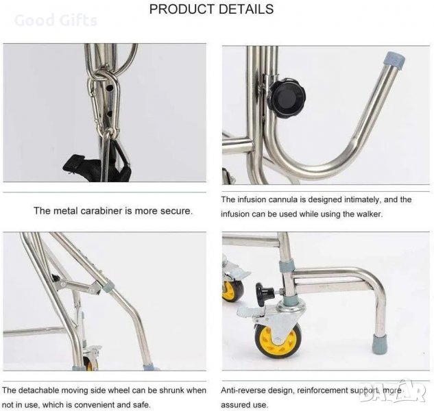 Безшумното универсално колело е издръжливо, въртящи се на 360° безшумни колела и две задни колела с фиксирани спирачки за лесна работа. Когато вървите под наклон, блокирайте спирачките, за да осигурите безопасността на потребителя.