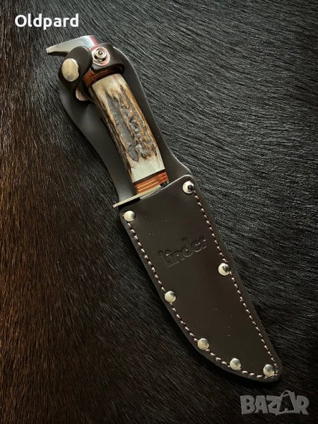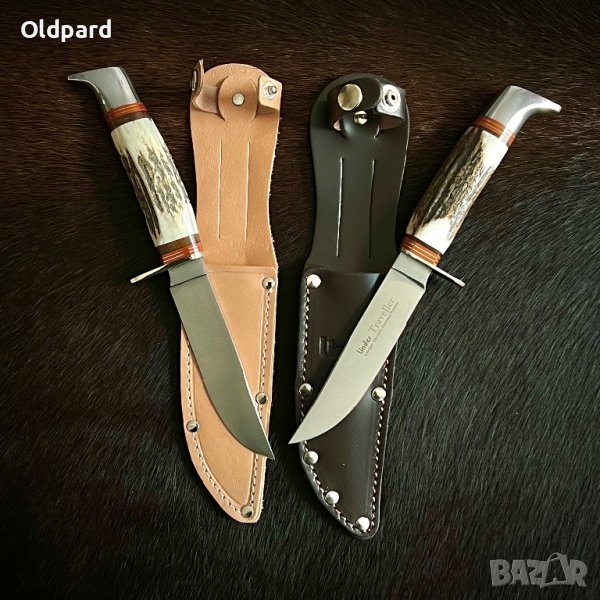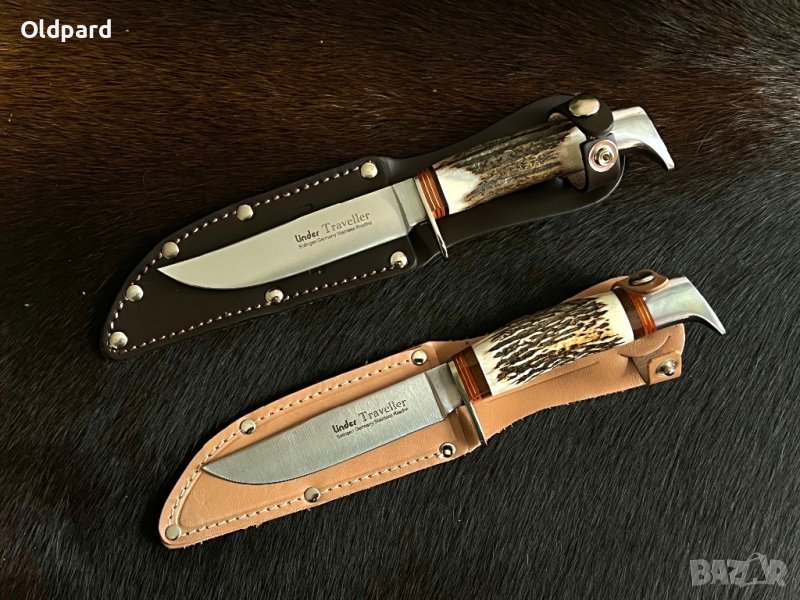 Немски ловен, къмпинг, туристически нож Traveller Wanderer (Solingen). Дължина на острието 11 см, обща дължина 21,5 см. Дебелина на острието e 5 мм. Дръжка - рог. Традиционна кожена кания (две цветови опции). Това е прекрасен подарък за мъж за всякакви празнични поводи.