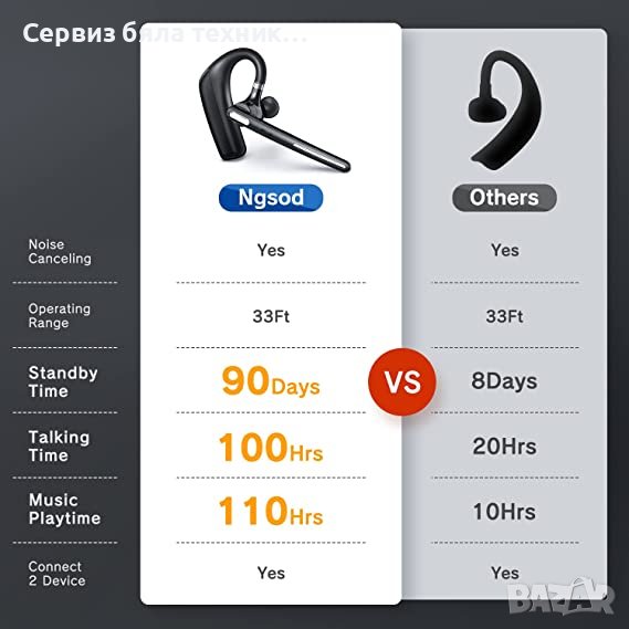 Ngsod Bluetooth слушалка - безжична слушалка с микрофон 90 дни в режим на готовност - 110 часа време за разговори, Bluetooth слушалка за мобилен телефон - PC таблет - лаптоп компютър, слушалки за шофьор на камион - шофьор - бизнес.