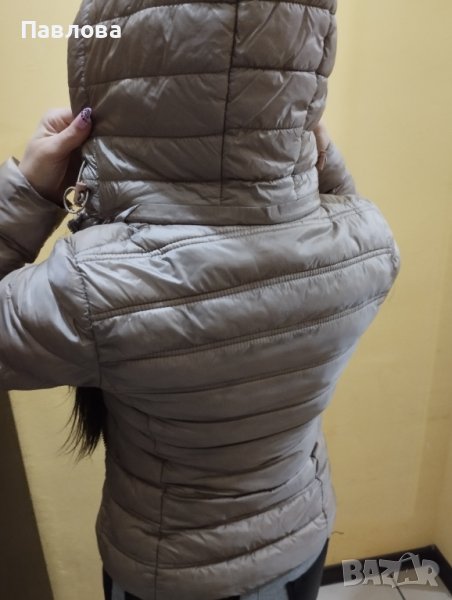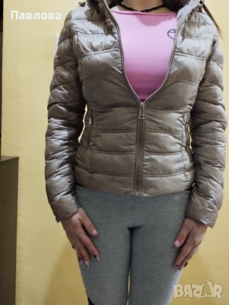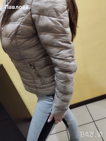 Якето е обличано броени пъти, подходящо за пролет и есен и топла зима. Два външни джоба, качулка, метални ципове. Цвят- бежов.