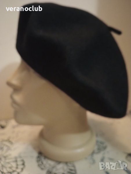 Дамска черна барета в черен цвят. Баретата е изработена от фина вълна. Подходяща е за размер 57/57,5 см.