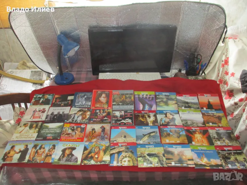 Дисковете с филми/игрални и документални/ са отлично запазени,практически нови.В оригиналните кутии.Съдържанието е много интересно и увлекателно.Вижте снимките-там то е описано.Продават се и поотделно.