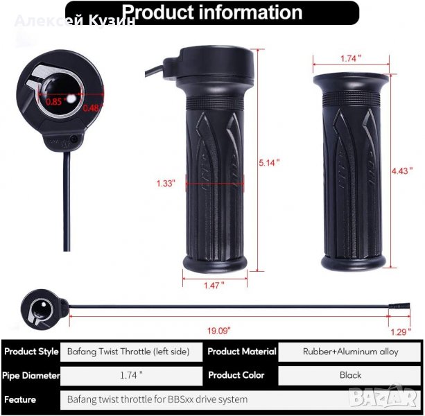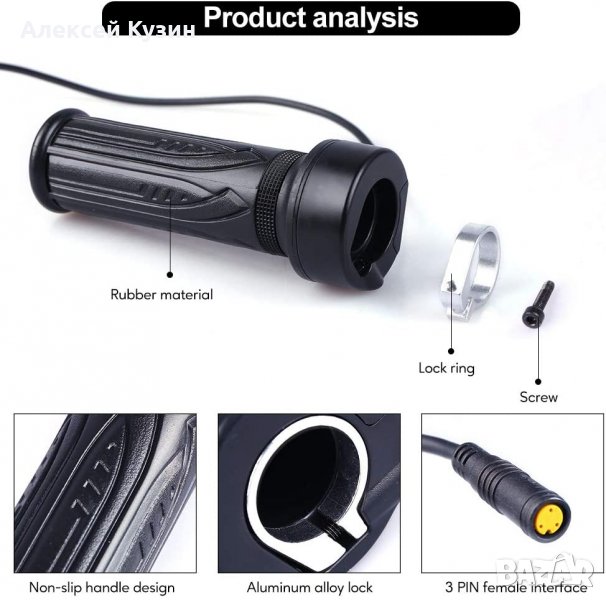 Ръкохватка на дросела за електровелосипед черен алуминий гумиран → Обява 39866498