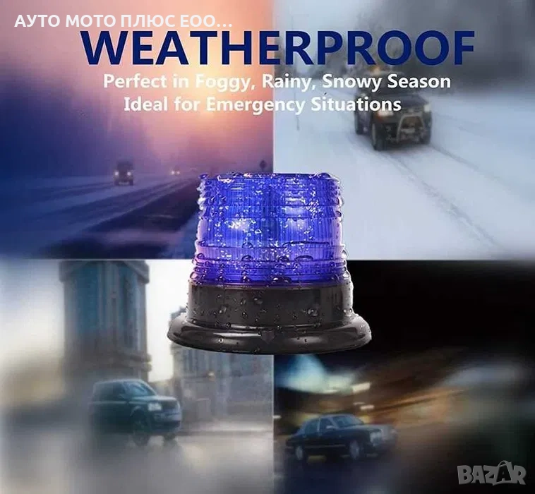 Сигнална лампа с мигаща синя светлина - блиц - захранване 12/24V - букса за захранвене от запалката на автомобила - няколко режима на работа - бутон за включване и изключване.