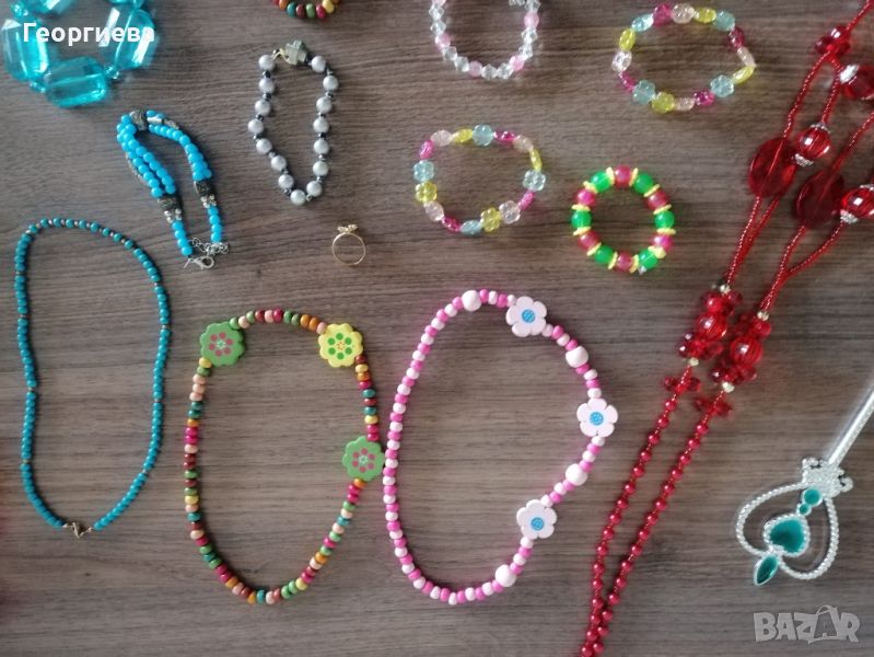 Лот бижута за госпожица, включващ гривните, пръстените и герданите от всички снимки.