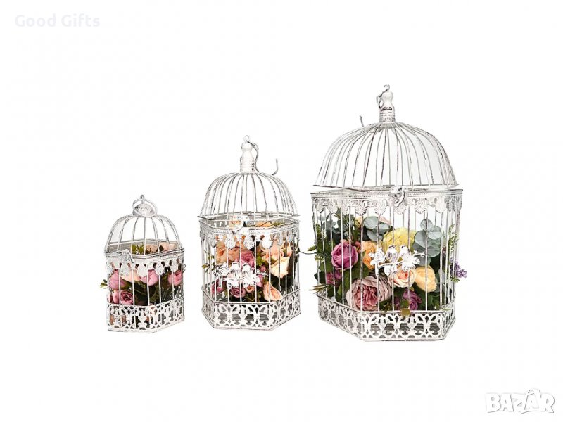 3бр. Метален Кафез за декорация Бял Браш TOUCAN