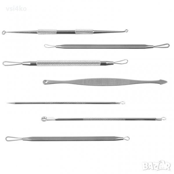 - 7 двустранни лъжички за безопасно премахване на черни точки и пъпки;