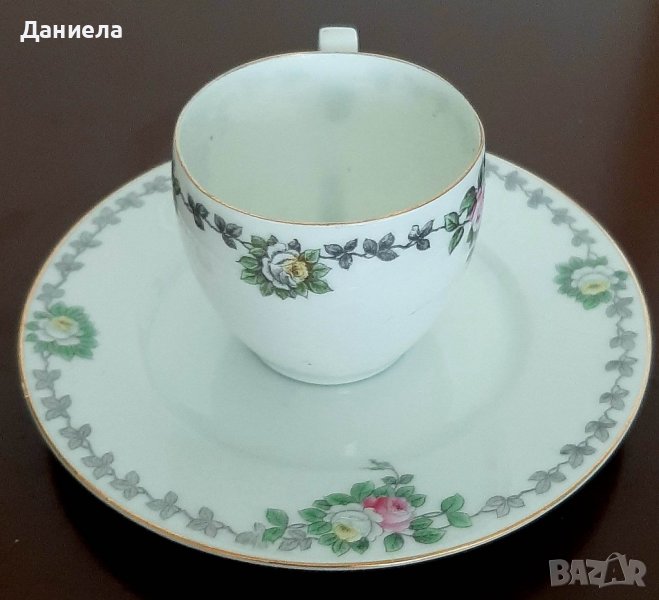 Сет от 4 чаши и чинийки за кафе от фин порцелан. Сервиза е 70-те години на миналия век