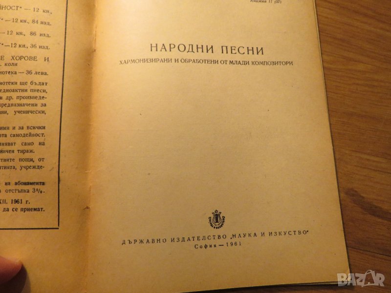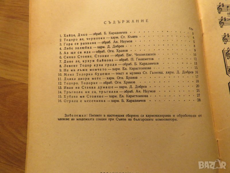 Стара колекция - Песни за народен хор - издание 1961 година - обработени и нотирани песни от най-доб