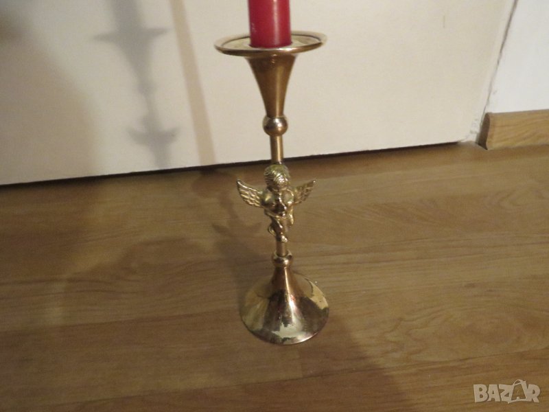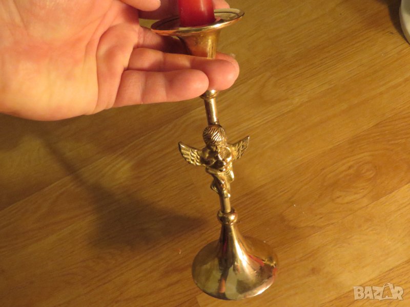 Старинен бронзов църковен свещник с ангелче 20,5 см. - запалете свещ и с молитвите си бъдете по близко до бог.