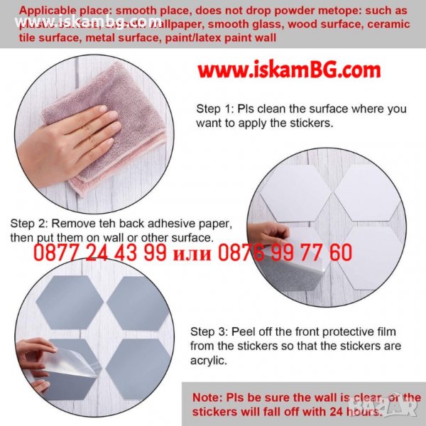 Паната са покрити със защитно фолио, за да не се надраскат по време на транспорта и складирането и апликацията им. След, като ги залепите на избраната повърхност, премахнете защитното фолио и ще получите крайният огледален ефект.
