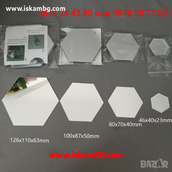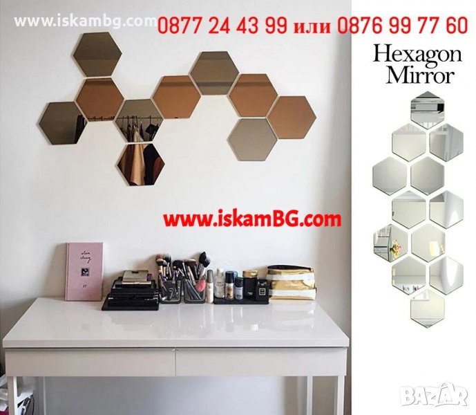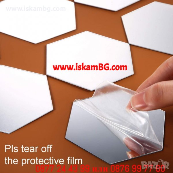 Огледални стикери, плочки за стена | Шестоъгълно нечупливо огледало - КОД 3847