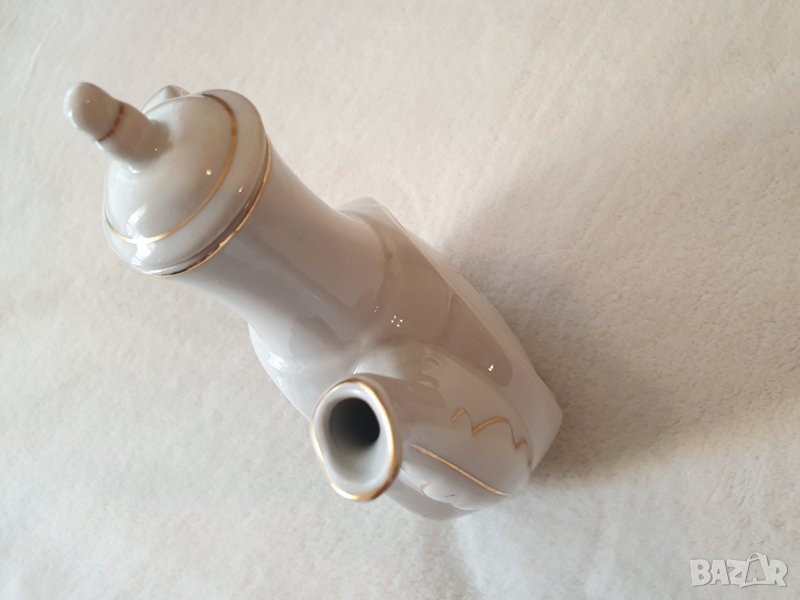 Продавам класическо ретро порцеланово бърдуче бърде бърдук с капаче и златни линии кантове от 60-те → Обява 39878743