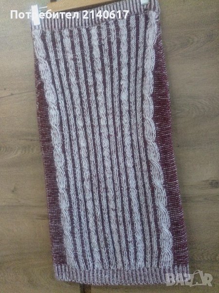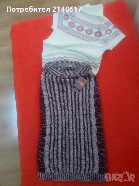 Пола с красиви плетеници,които оптически издължават фигурата;меланжирана прежда;талия на ластик от 66 до 86см.Дължина-70см.