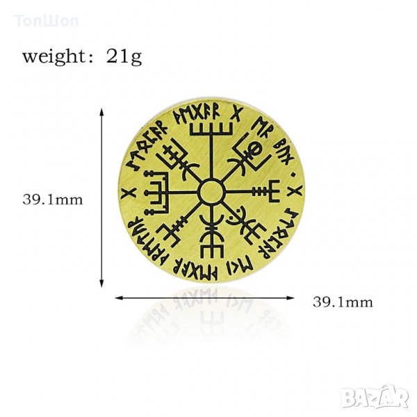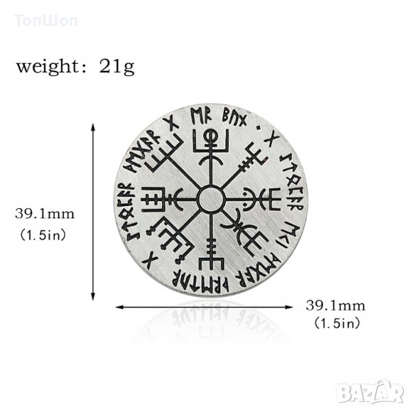 Тази монета е пътепоказател и ще ви помогне да преведете притежателя и през трудното пътуване на живота. Използвайте я за да намерите правилния път за пътуване. Vegvísir ( Пътен знак ) или скандинавският компас е исландска магическа пръчка, която според ръкописа на Хулд предпазва човек от загуба на пътя при лошо време. Викингите са използвали думата "хафвила" или "объркан", което означава да нямаш усет за посока или да се изгубиш в морето.