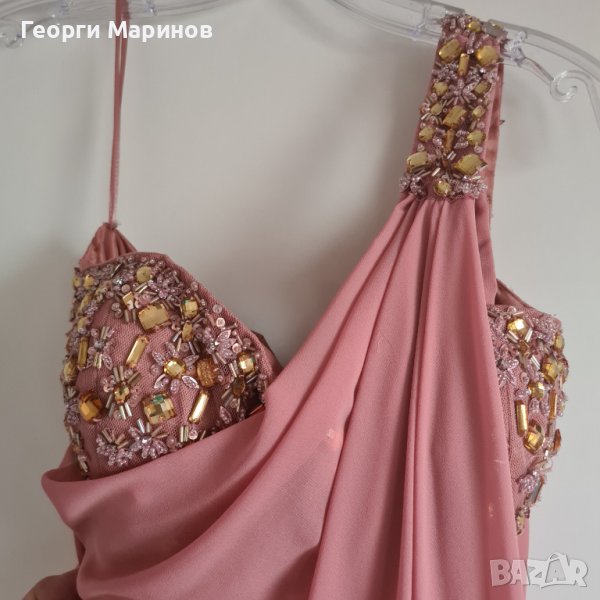 Роклята има кристали по бюстието, които със сигурност ще привлекат вниманието към дамата, която я носи на официално събитие, например абитуриентски бал или коктейл.