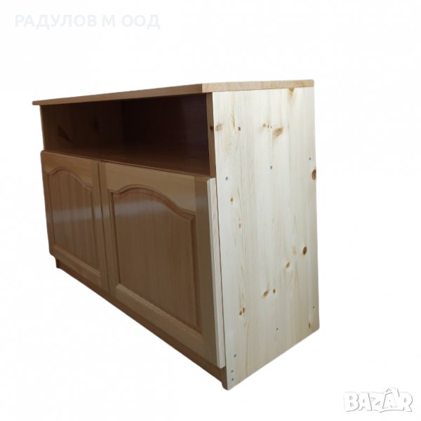 Практичен шкаф - поставка с две вратички, ниша и рафт.