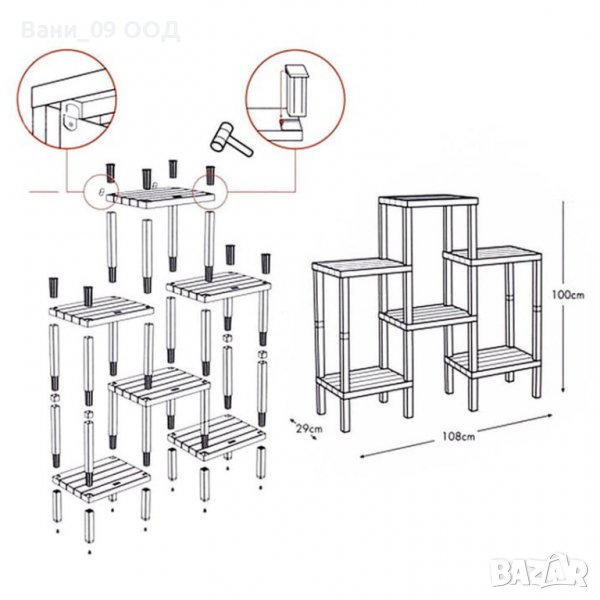 Цветарник с място за 6 саксии → Обява 39882809