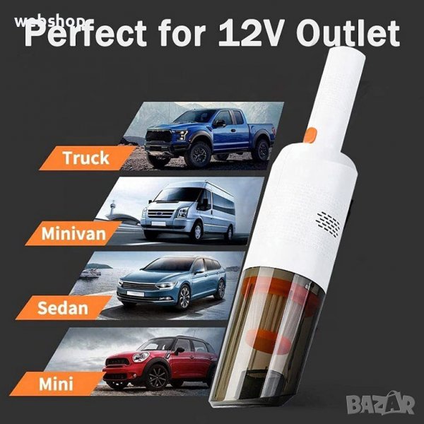 Безжична прахосмукачка с голяма мощност и Миещ се ХЕПА филтър , за автомобил , DC 12V, 120W