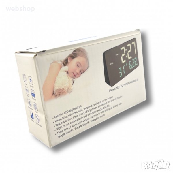Огледален LED часовник с дата , термометър и аларма/ПОСТОЯННО СВЕТИ/