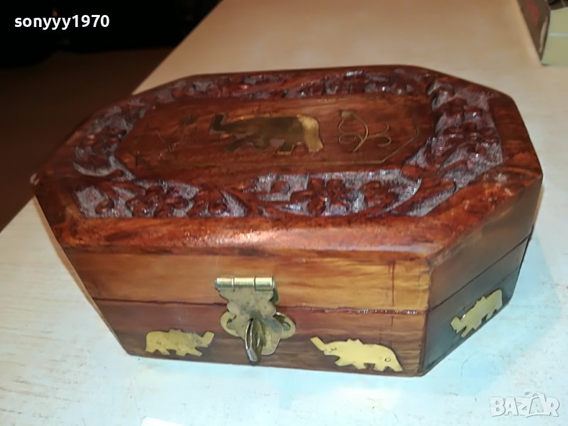 КУТИЯ ОТ ЕКЗОТИНО ДЪРВО С ЗЛАТНИ СЛОНЧЕТА 0403231849