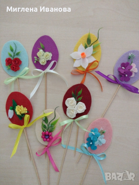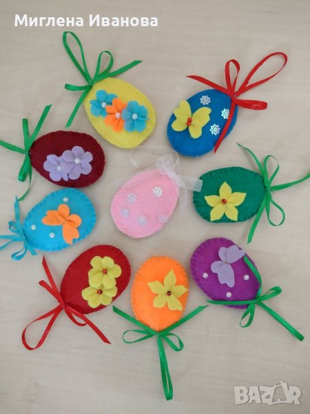 Ръчно изработени великденски декорации . Цени от 2 до 15 лвяйца от филц- 2 лвяйца със сатенена панделка - 2,50 лв